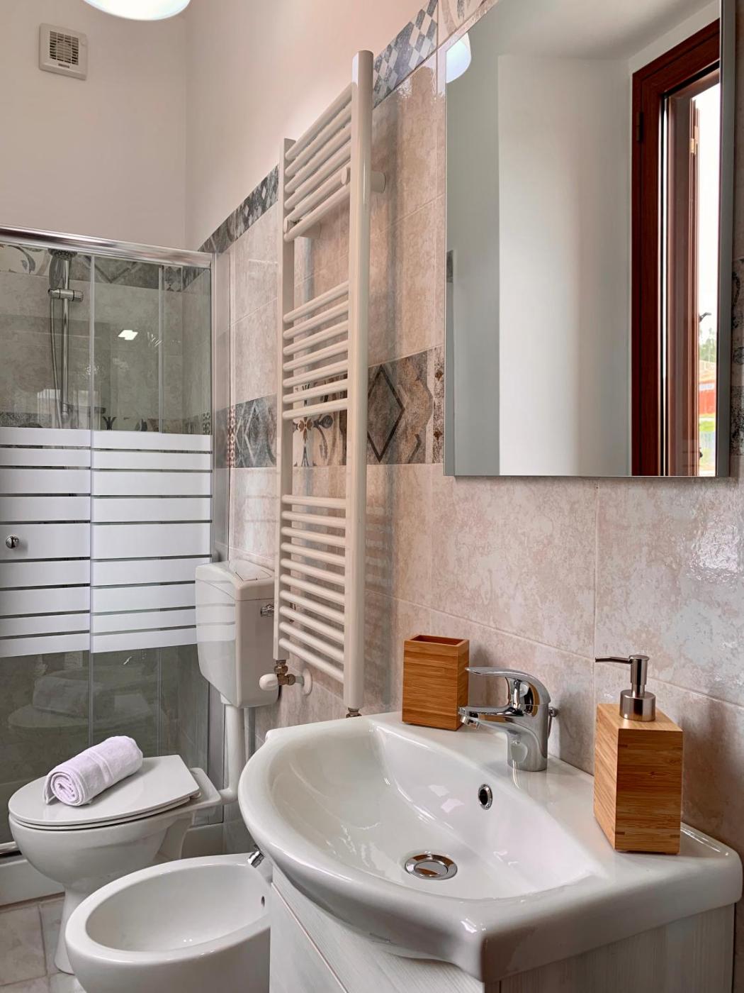 Double Room with Private Bathroom. Providing free toiletries and bathrobes, this double room includes a private bathroom with a shower, a bidet and a hairdryer. Meals can be prepared in the well-fitted kitchen, which comes with a stovetop, a refrigerator, kitchenware and an oven. The air-conditioned double room provides a flat-screen TV with satellite channels, a washing machine, a private entrance, a tea and coffee maker as well as city views. ;