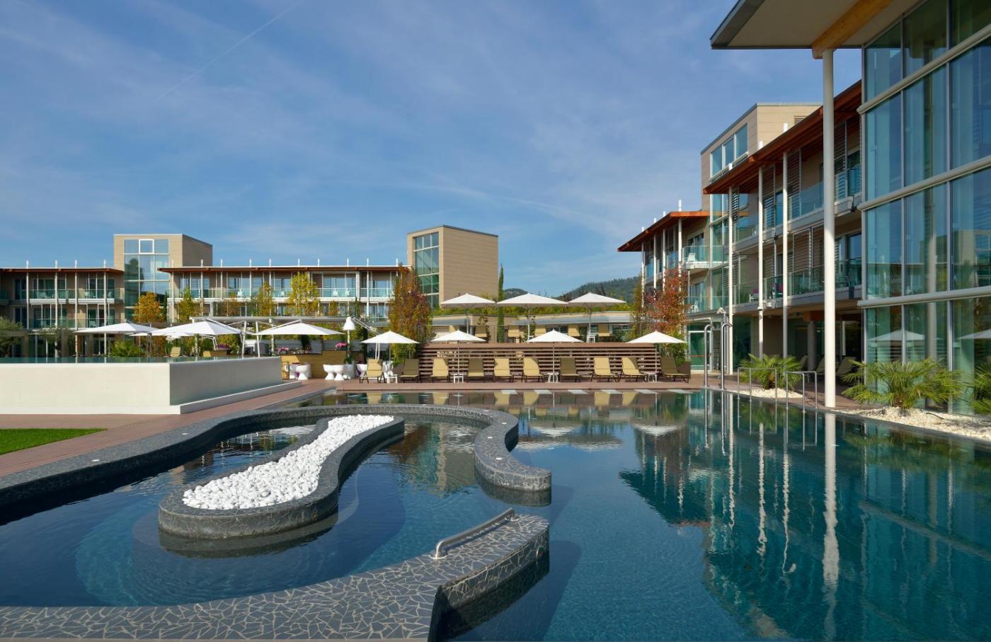 Aqualux is a brand-new hotel characterised by modern interiors, interesting architecture and extensive wellness facilities. It isin Bardolino on Lake Garda at the foot of Monte Felice. Parking is free.