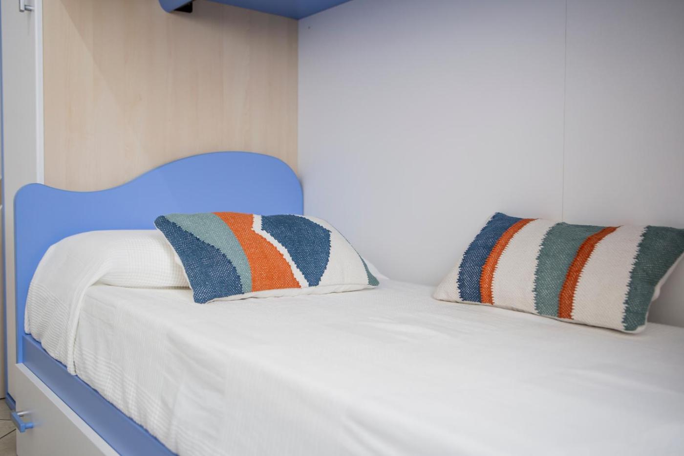 Two-Bedroom Apartment. This spacious apartment comprises 1 living room, 2 separate bedrooms and 1 bathroom with a shower and a bidet. Guests can make meals in the kitchen that comes with a stovetop, a refrigerator, kitchenware and an oven. The air-conditioned apartment provides a flat-screen TV, a washing machine, a coffee machine, a seating area as well as sea views. The unit offers 3 beds. ;