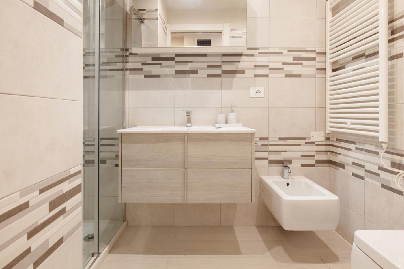 One-Bedroom Apartment. This air-conditioned apartment comes with 1 living room, 1 separate bedroom and 2 bathrooms with a shower. Meals can be prepared in the kitchen, which features a stovetop, a refrigerator, a dishwasher and kitchenware. This apartment has a washing machine, a coffee machine, a flat-screen TV and a balcony. The unit has 2 beds.