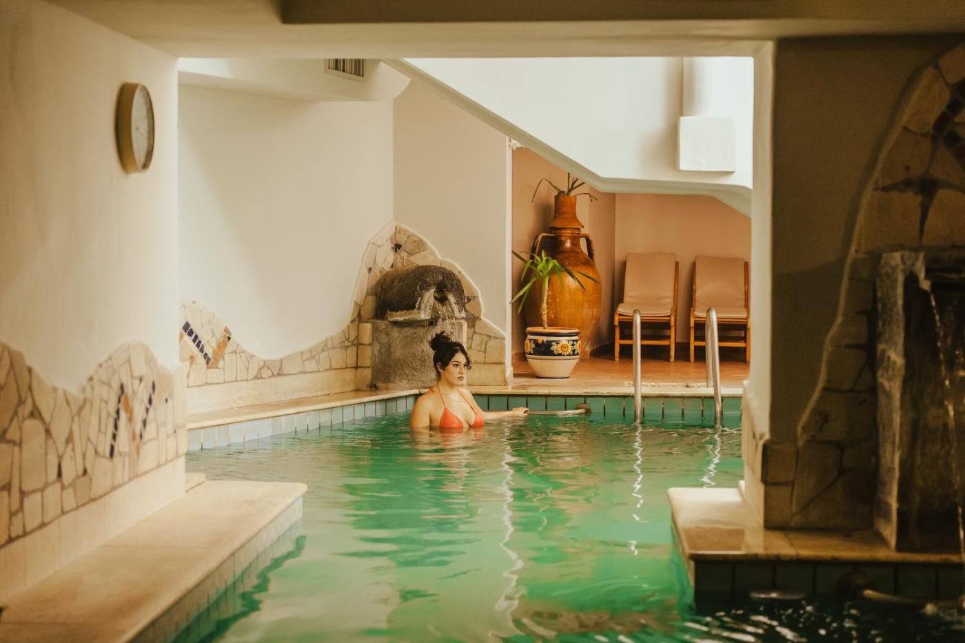 Boasting a bar, massage services and views of sea, Hotel Terme Zi Carmela isin Ischia, 400 metres from Spiaggia della Chiaia. Featuring a garden, this 3-star hotel has air-conditioned rooms with a private bathroom. A spa and wellness centre comprising a sauna, an outdoor swimming pool, a hot tub, as well as a terrace can be used byguests.