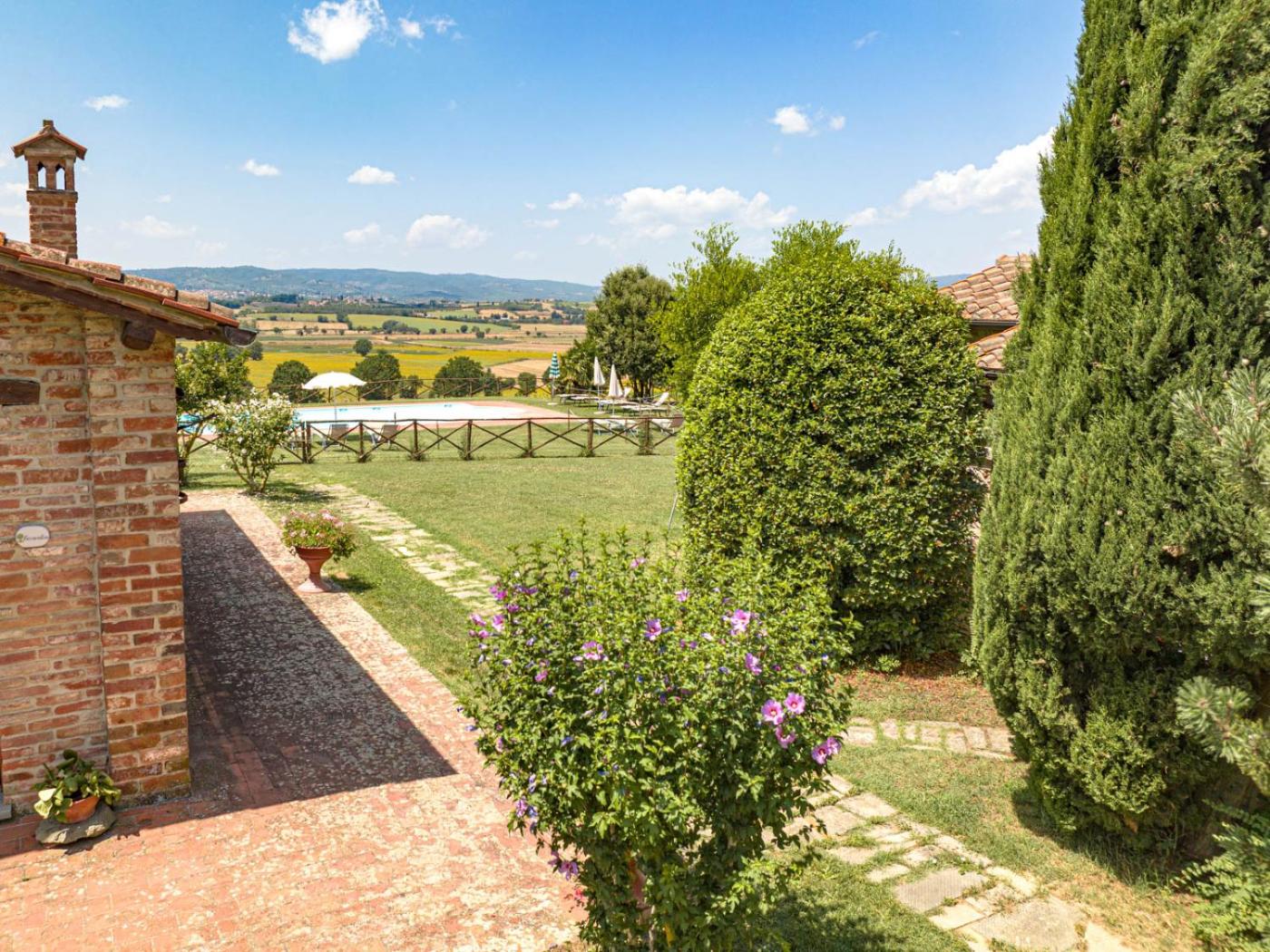 Il Querciolo - Azienda biologica, Agriturismo e Cantina isin Marciano and features a pool with a view and mountain views. The property has pool and garden views, and is 24 km from Piazza Grande. There is a childrens playground and guests can make use of free WiFi, free private parking and an electric vehicle charging station.