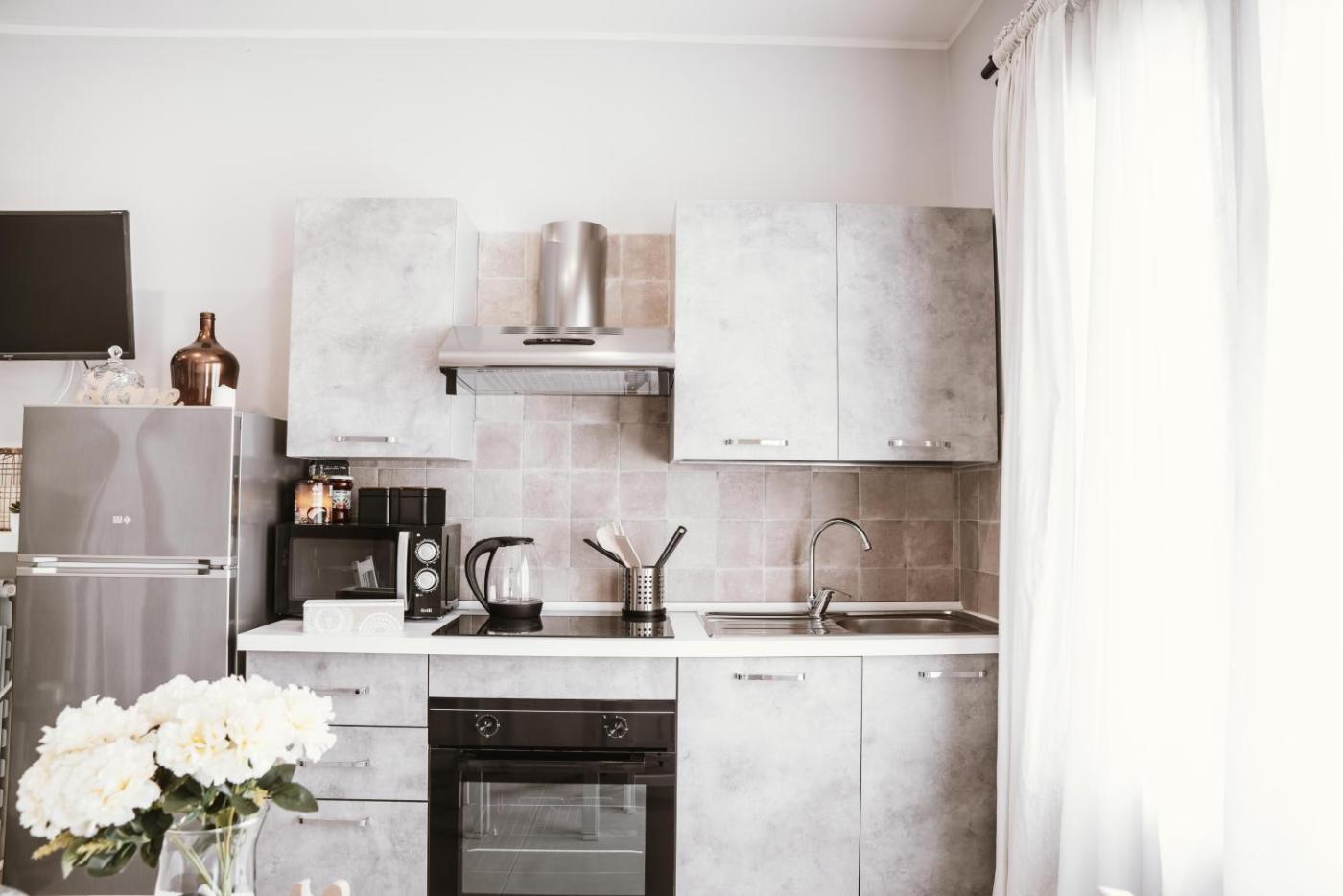 Deluxe Studio. Guests will have a special experience as the studio features a hot tub. Guests will find a stovetop, a refrigerator, kitchenware and an oven in the well-fitted kitchenette. The studio also offers a barbecue. The studio provides air conditioning, a washing machine, a terrace with garden views as well as a private bathroom featuring a walk-in shower. The unit offers 1 bed.