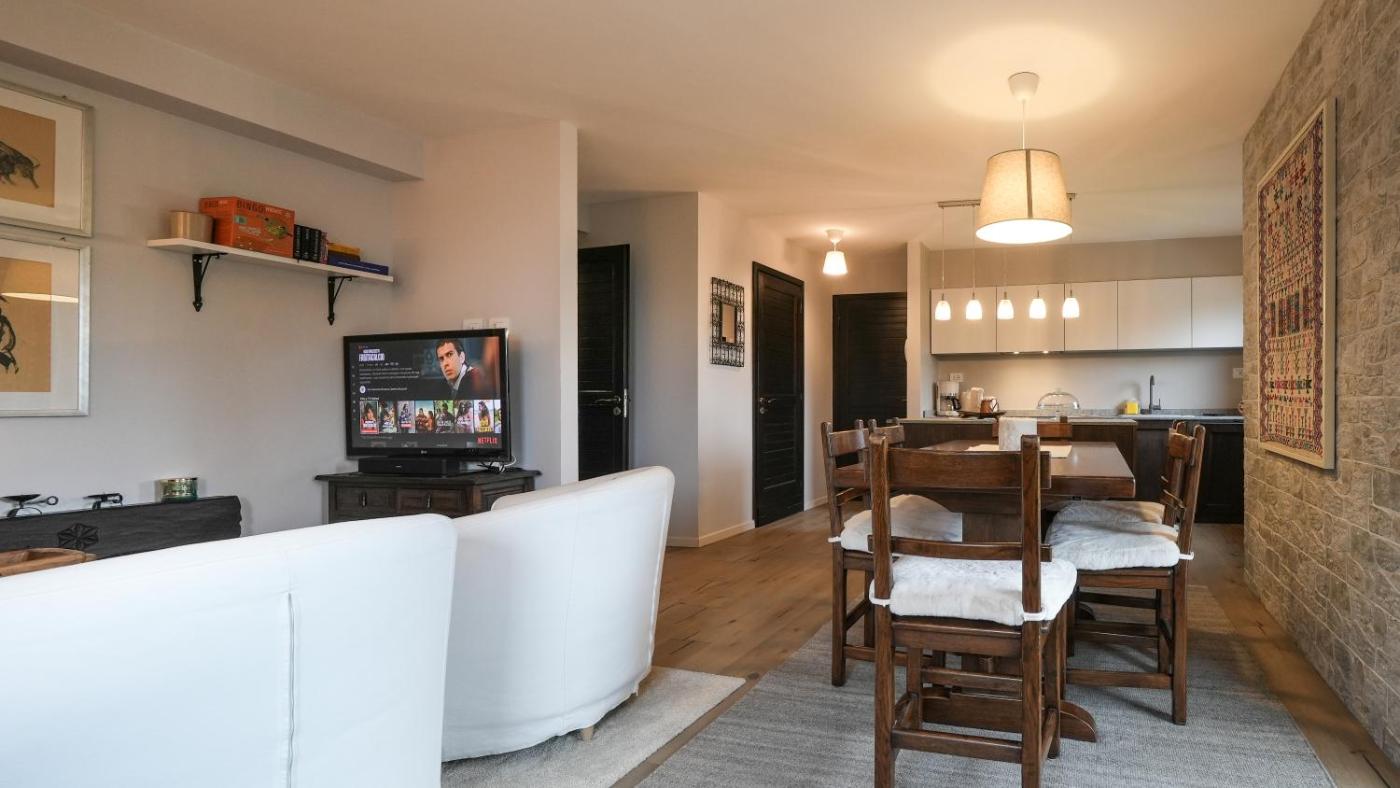 The apartment features 2 bedrooms, 1 bathroom, bed linen, towels, a flat-screen TV with streaming services, a fully equipped kitchen, and a terrace with mountain views. This apartment is non-smoking and soundproof.